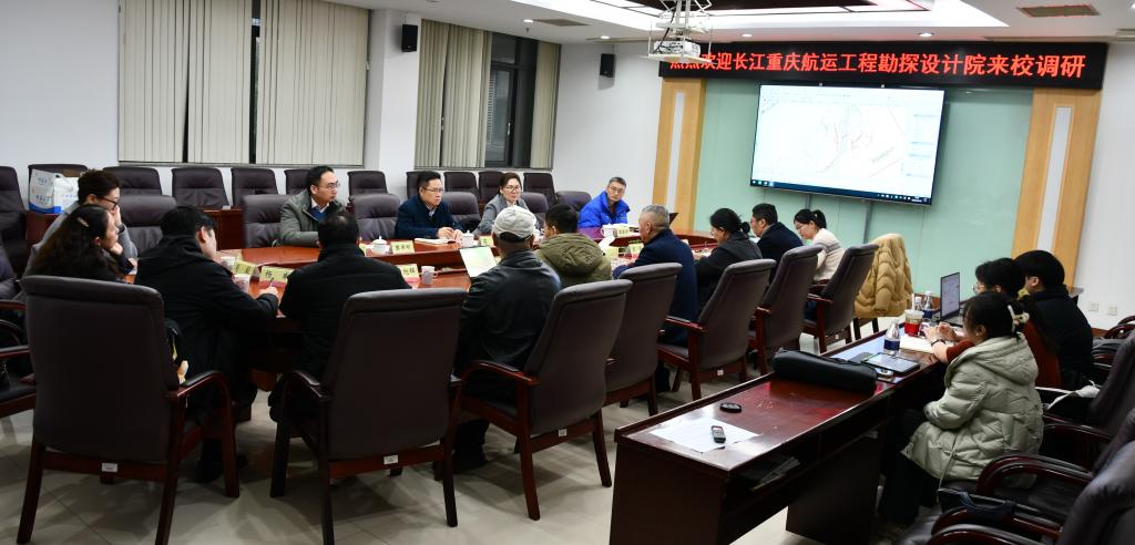 2025年12月16日,长江重庆航运工程勘察设计院总工程师陈建、航道一所所长何艳军等一行4人莅临我校河海学院、国家内河航道工程中心调研交流。党委常委、副校长杨胜发,国家内河航道工程中心常务副主任胡江,西科所副所长周勤,港口航道与海岸工程系副主任付旭辉、王丽,给排水科学与工程系副主任张先炳,航道建设与生态保护重庆市重点实验室副主任杨威等参加了座谈交流会。会议由国家内河航道工程中心常务副主任胡江教授主持。